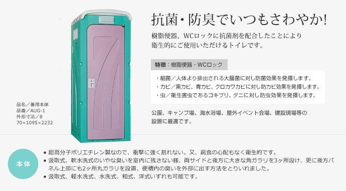 【旭ハウス工業】 UHPE製仮設トイレ 水洗タイプ 洋式 [AUG-FW+15WS]